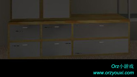 5、观察衣柜下面的小柜子,发现柜子上面有密码,但是看不太清! 点击右边柜子上面的部位会出现六个格子,能放刚才得到的物品