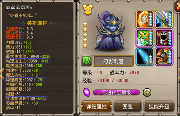 和28点敏捷。可以看出幻影刺客的觉醒装备可以让她的输出更上一层楼。但是只有洗炼属性能够稍微提高一些幻影刺客的的魔抗、护甲,在生命值方面没有提高,