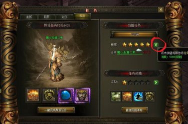 如果想要把难度降低,可以考虑花些铜钱,也不贵,几万就够。方法很简单:找到任务按钮或快捷键“L”点击,在任务界面弹出后点击帮派,在任务最困难的15和20环,点击图中红圈中的向左箭头就可以花点钱降低任务难度。Z只要花费少量金钱就可以把boss和谐掉了,然后就只剩一些简单的小怪,打完就可以过15和20轮的任务了。既不用花费大量时间,又不用和别人争抢,轻轻松松完成任务。