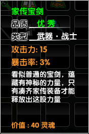 看似普通的宝剑,蕴藏有神秘的力量,只有凑齐家传装备才能释放出这股力量