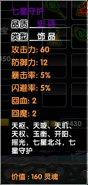 高级龙王出产三件终极装备,两件武器是传说级别的最终武器,而另一件就是这个七星守护,它有绝对的优势战胜血海妖壳和天煞骨链,总之在挑战牛魔王之前,传说级别的武器和七星守护是必须要刷到的。
