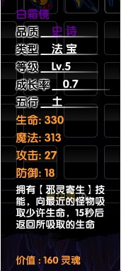 白霜镜是白骨秘境中的白骨精掉落装备合成的一种法宝,性价比相当不错