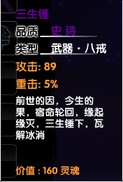 就是八戒的一把相当不错的史诗武器,超高的攻击支持给八戒带来更加强力的战斗效果,并且三生锤造型非常拉风。不好的是不少玩友反应小怪掉落三种碎片的几率极低,的确是有这个问题存在,不过只要多付出时间这样一件极品装备就可以获得还是不错的。小怪掉落三种碎片的几率低于1%。