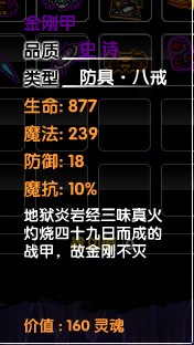 八戒的史诗铠甲,出自牛魔谷的BOSS红孩儿,不少玩友都问造梦西游2金刚甲是谁用的?金刚甲是八戒的装备,装备属性方面仅提供生命、魔法、防御、魔防等,没有任何的攻击加成,所以编者并不是特别喜欢这件防具,另外就是红孩儿爆金刚甲的几率很低,大概只有10-15%左右,不少玩友都在抱怨打不到金刚甲,好在红孩儿的牛魔谷没有小怪干扰,熟练的朋友可以反复刷。