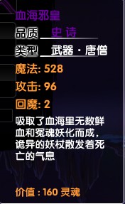 血海邪皇是由孟婆掉落的史诗级唐僧武器,也是合成血海魔童的必要装备之一。