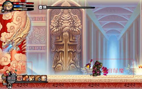 朝会殿的袁洪掉落三件装备紫金镔铁棍、卷帘绿魔和嗜魔杖,我们找到了两个易爆点,一个是最左边盘龙柱下,掉落紫金镔铁棍,另一个是出口点的左边一点掉落卷帘绿魔。经过orz的多次测试都没有掉落嗜魔杖。