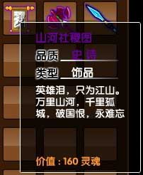 山河社稷图是造梦西游3中一个神秘的饰品,由最后一关的BOSS杨戬掉落,能干掉杨戬的朋友比较容易的能够打到山河社稷图,但是神秘的是这款饰品没有任何属性。