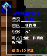 所以造梦西游3马官指环的合成方法就是马官指环制作书+檀木20+玄铁40+灵魂400