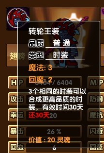 转轮王时装的普通品质未强化状态时的属性为魔法3、回魔2,从属性方面看更像是法系专用的时装。