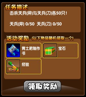 天兵斧指的是任务系统中任务要求击杀的小怪,其中天兵斧在隐藏副本蟠桃园和御马监中出没,击杀天兵斧后会自动计入需要天兵斧的任务中,任务击杀个数满了就可以完成任务了。