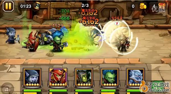 巨魔和猴子都为中排,因此进场巨魔可以开启近战模式,攻击可吸血。外加猴子分身可以吸收大量伤害,前排完全可以站住脚。