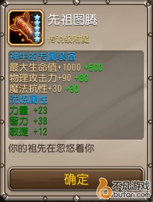 神牛觉醒装备为忽悠人的先祖图腾,先祖图腾会增加神牛的最大生命,物理攻击力以及魔抗。极大地提高了神牛的耐揍能力。