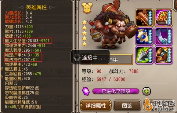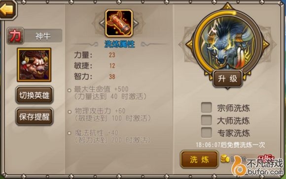 洗练:最大生命500可以细细看,智力洗到200基本不用指望,而100敏捷增加60物攻对神牛意义也不大,因此最大程度的洗练力量和智力即可,这样可以保持神牛的优势——智力T。