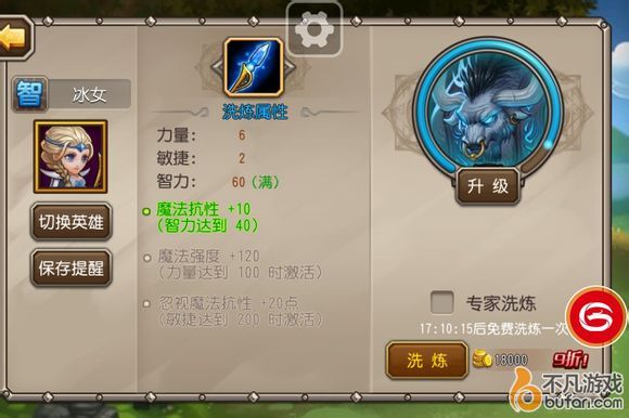第一条毛毛雨,进一步增加生存,第二条还可以,增加输出,第三条是好属性,可惜难度太高。关于冰女洗练,如果打算打竞技场,个人建议无视智力全力洗力量,单洗100力量,难度应该还可以接受,洗出120强度,生存和输出都不会太低。毕竟活着才有输出。