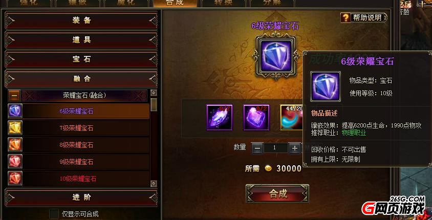 融合宝石要通过高花费才能获得,需要宝石精华和2个单属性石头,4个同级别的双属性石头。