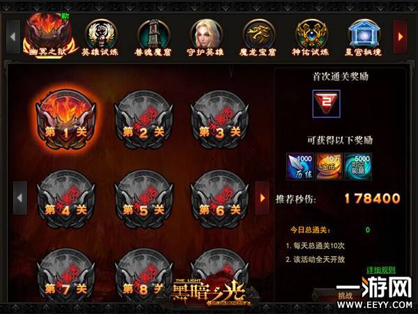 黑暗之光幽冥之狱玩法,黑暗之光幽冥之狱介绍。在角色进入转生状态后即可解锁,副本共有48关,选择关卡后进入挑战,需通关前一关卡,才能开启下一关卡。