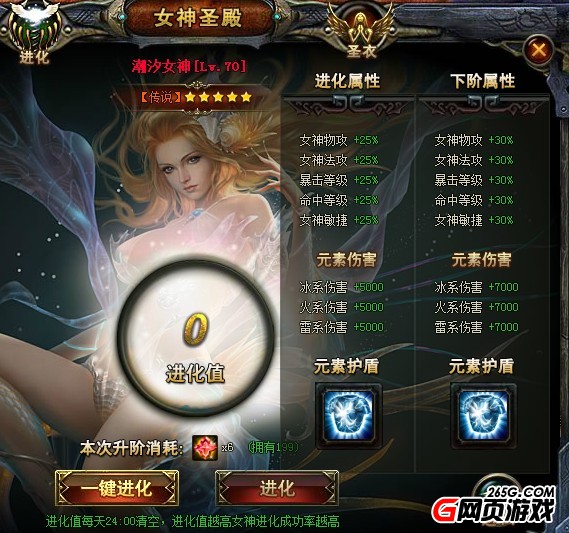 进化女神可以使英雄和女神的属性、技能伤害都得到提高,不同等级的护佑女神进化过程中女神的护佑等级差别也会很大,很多玩家都准备对女神进行进化来提高英雄和女神的属性技能。