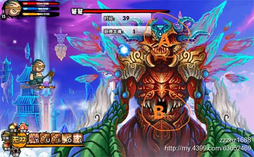 A处是饕餮的致命攻击部位,B处如图是张开状态的,可以攻击三下获取龙魂。
