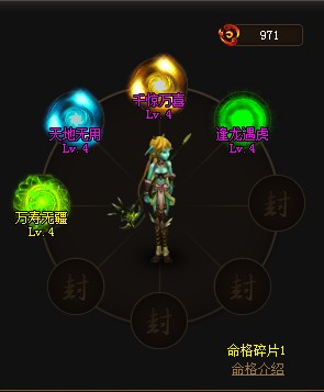 在游戏中期60-80的范围内,如果你还带着夜魅的话,命格基本上是5-7个,万寿、千惊万喜、天地无用、逢龙遇虎、霸者横栏、轩辕剑体是比较好的配置,有些有飞仙的朋友还是把飞仙类的命留给主角或者刑天吧。